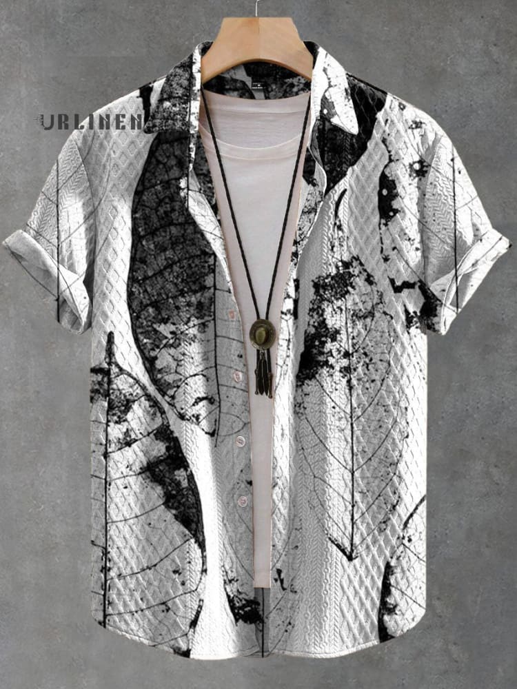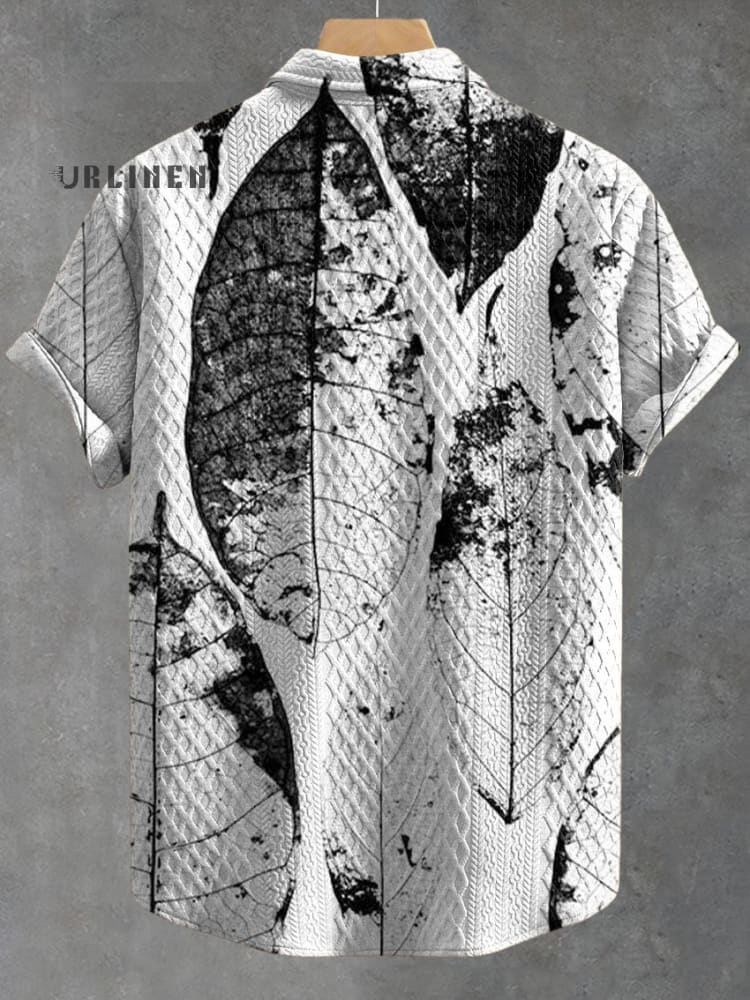 Vintage Hand gemalt schwarz und weiß Blatt drucken lässig Jacquard-Shirt