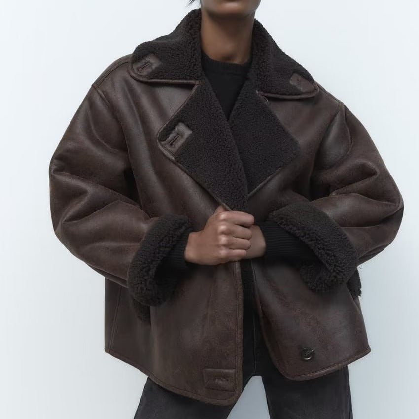 Nina | Warm gefütterter Damenmantel aus Kunstfell & Leder
