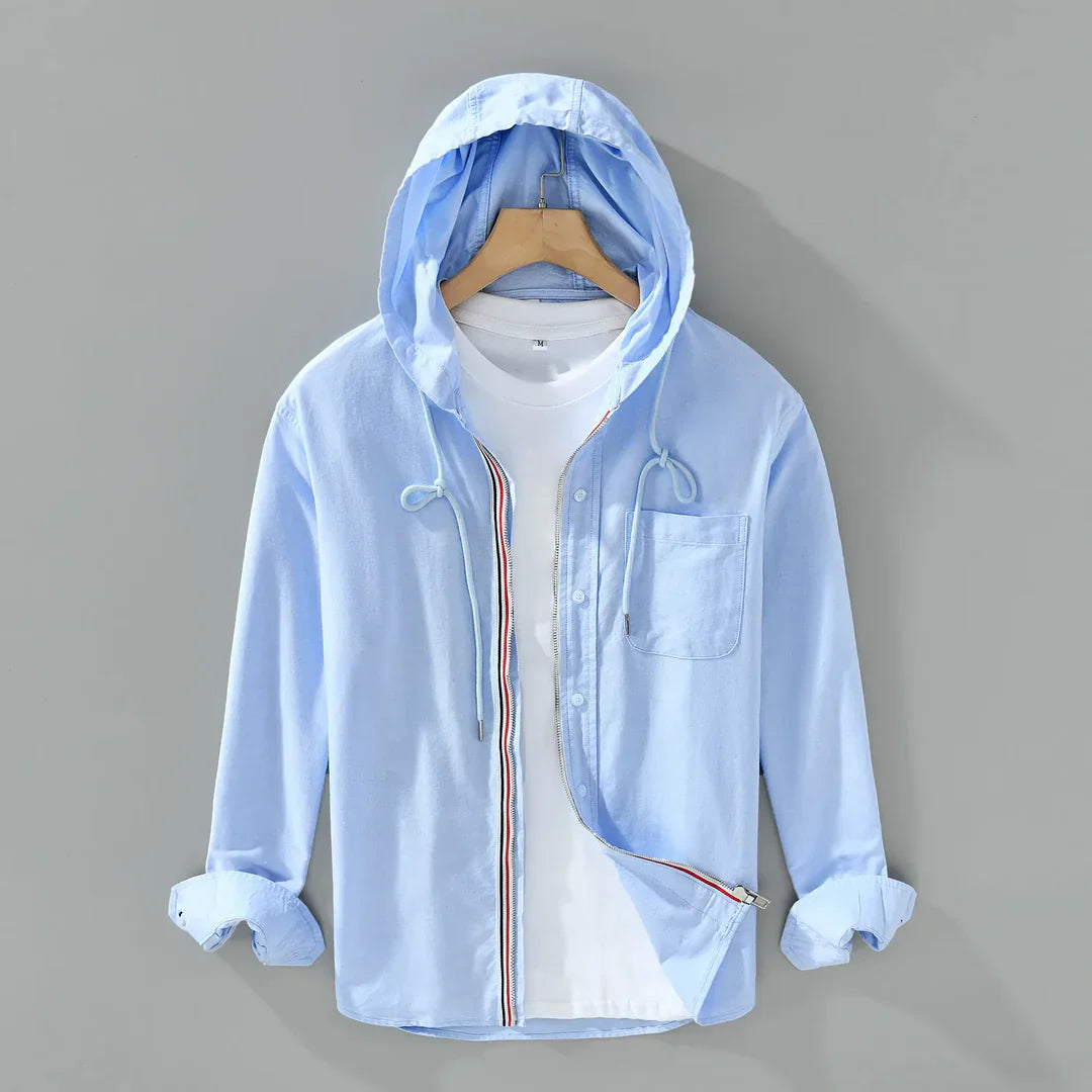 Dieses Shirt zeichnet sich nicht nur durch sein Streifendesign und den robusten rostfreien Stahl-Reißverschluss aus, sondern vereint auch praktische Funktionalität mit stilvollem Charakter dank einer praktischen Vordertasche.