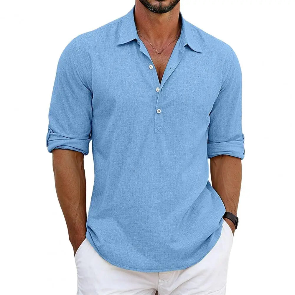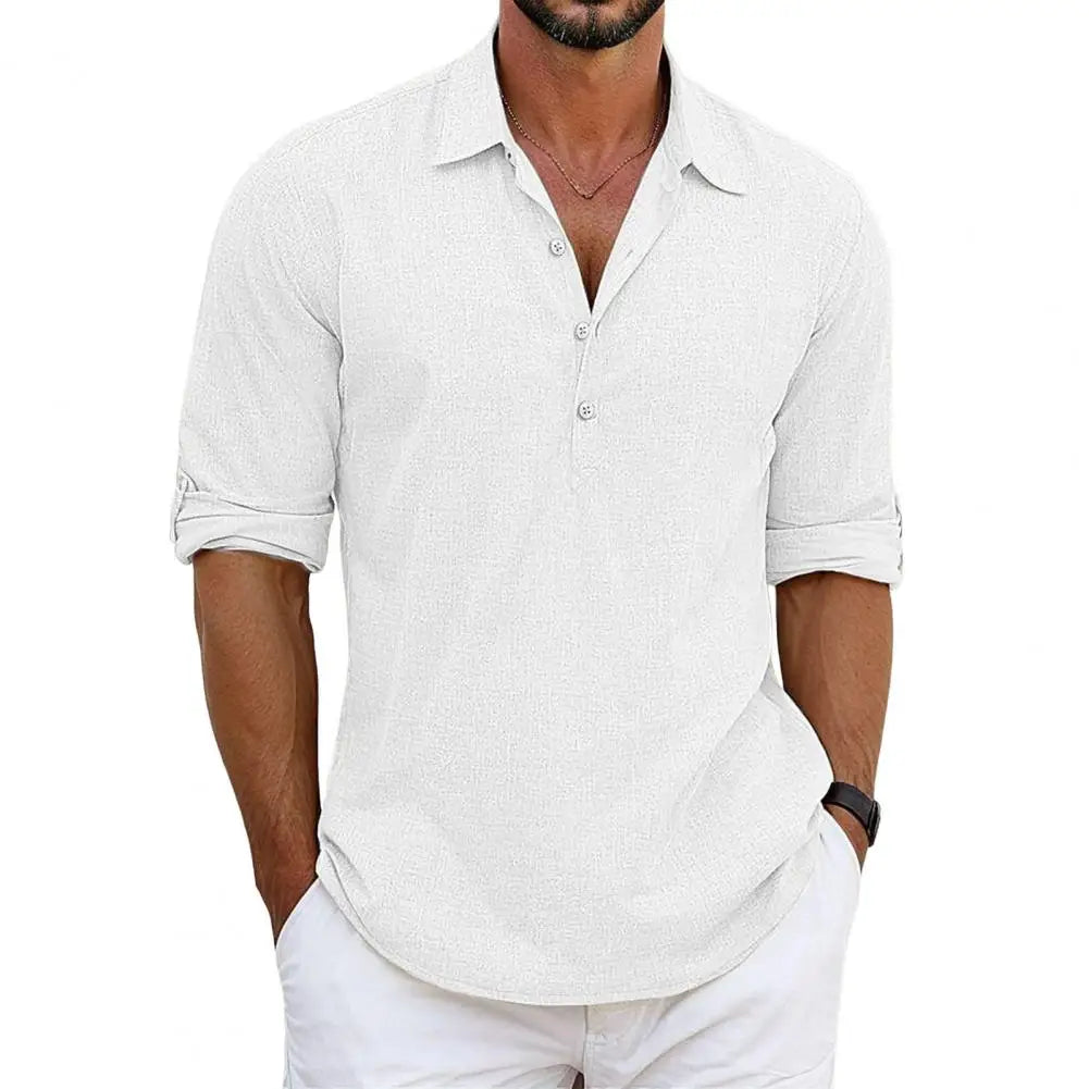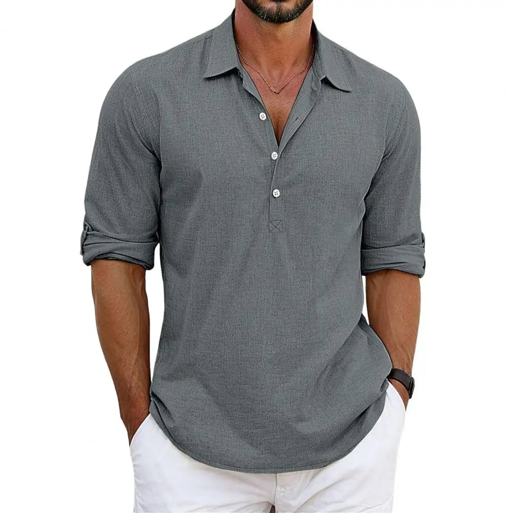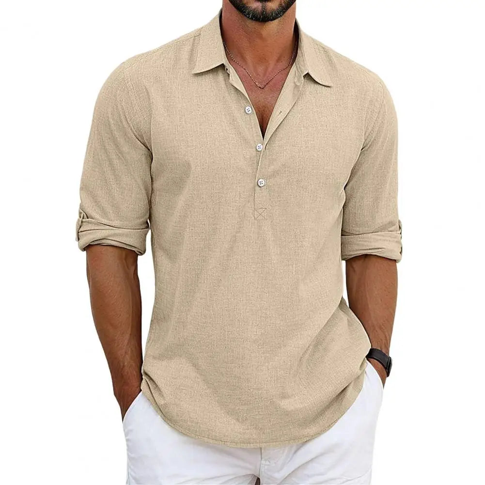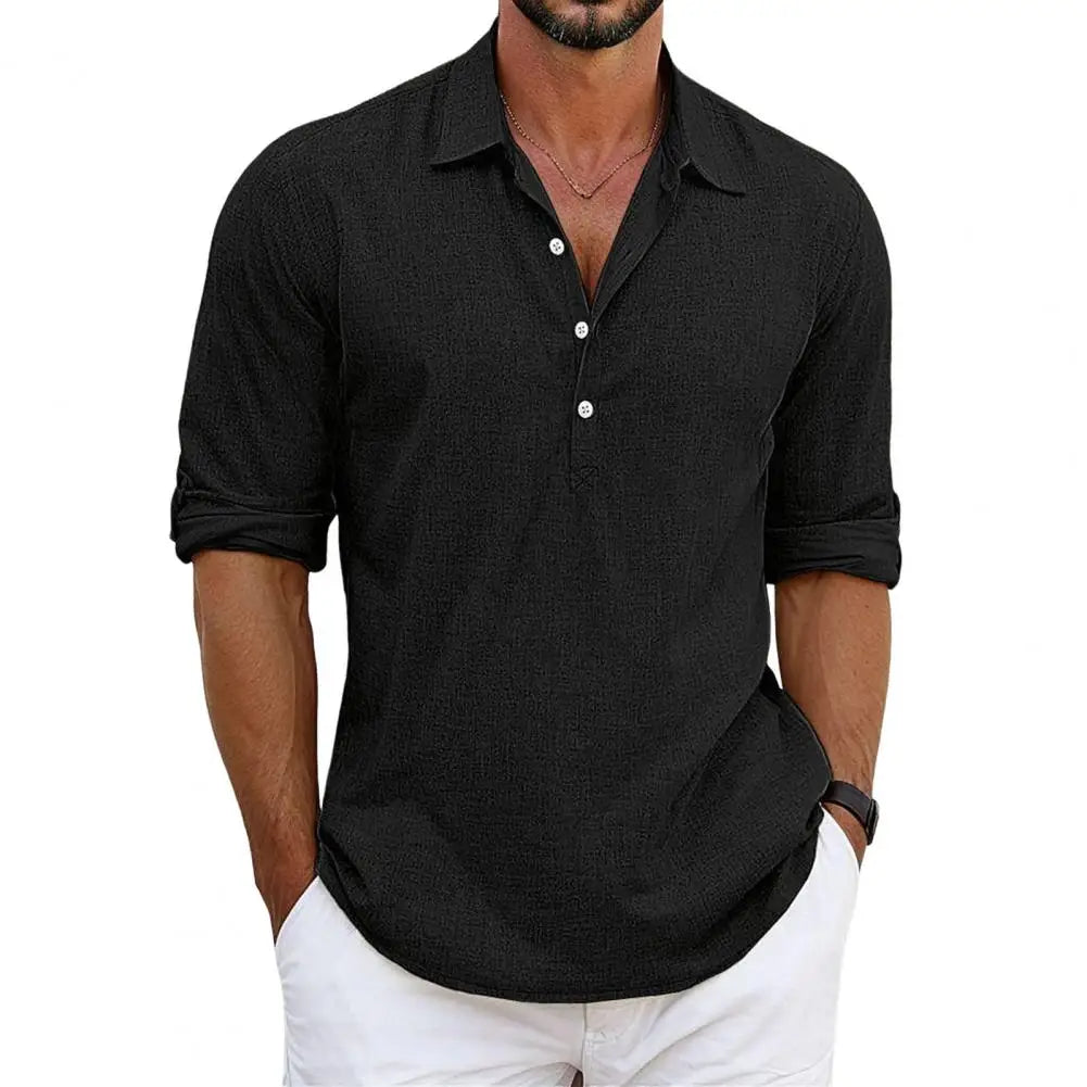 • Zeitloser Stil: Der halboffene Kragen und die Knopfleiste verleihen dem Hemd einen modernen, gepflegten Look, der sich sowohl für lässige als auch für formellere Anlässe eignet.