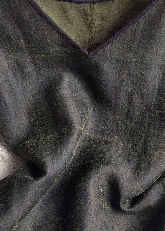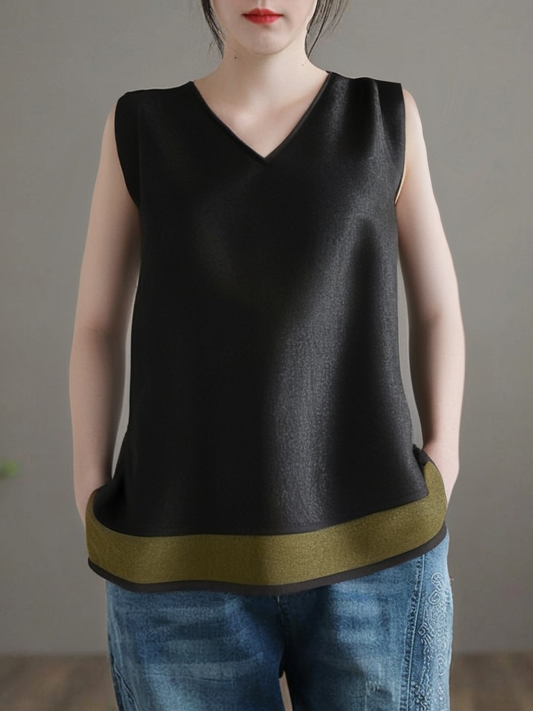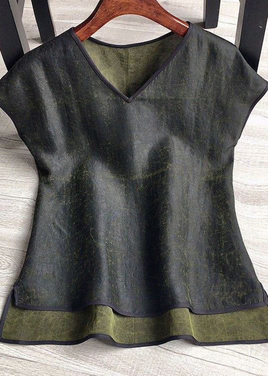 Zweiseitiges schwarzes Seidentop mit V-Ausschnitt